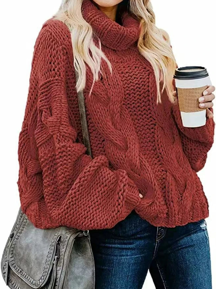 Women Sweaters Long Sleeve Turtleneck Knitted Pullovers Screw Thread S